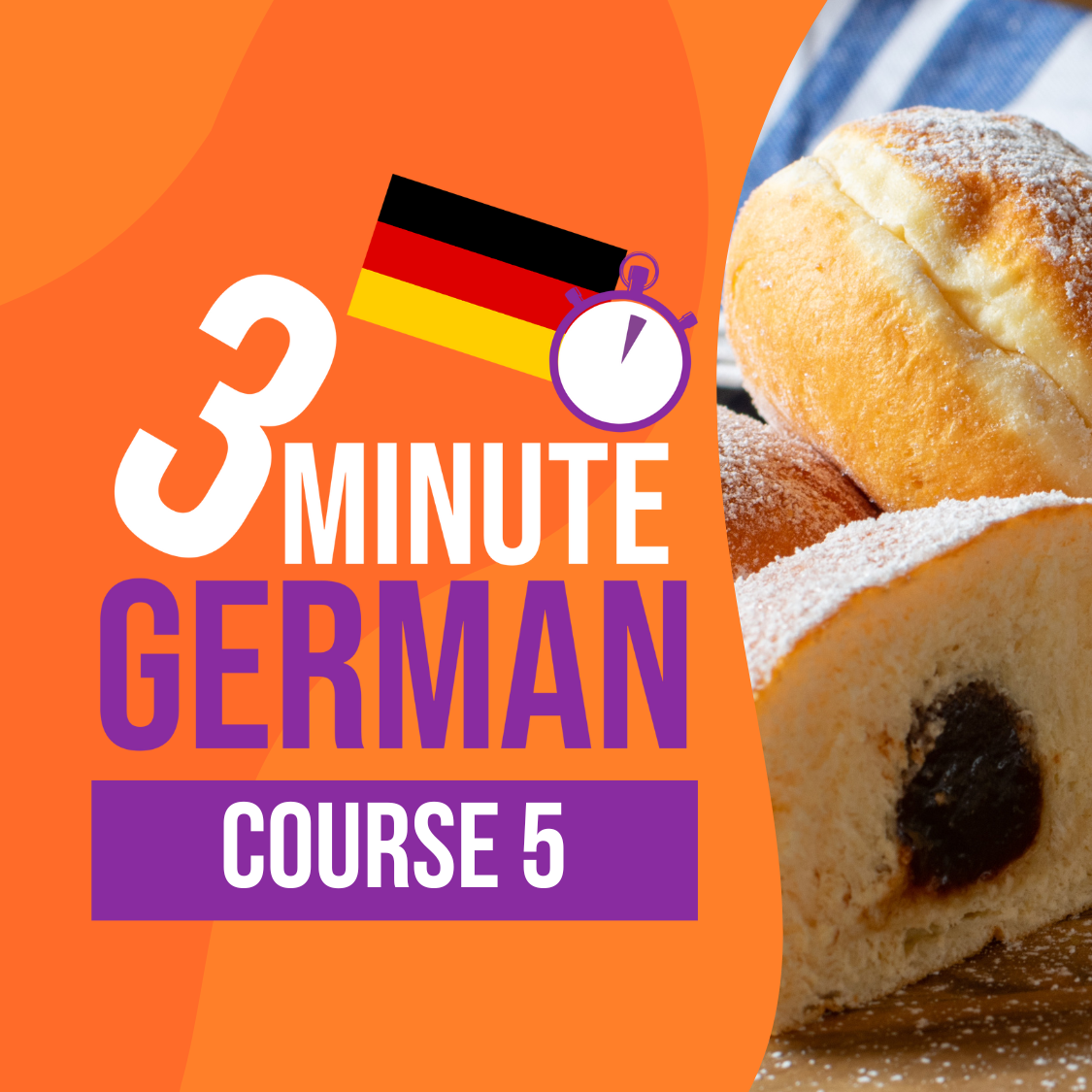 Hier ist der fรผnfte Kurs - here is the fifth course of the 3 Minute German series, and it contains lessons 36 to 44. In this course, you'll really expand your vocabulary and open up huge new areas of the German language with lots of new adjectives and adverbs. You'll also look at the past tense, aka the present perfect.